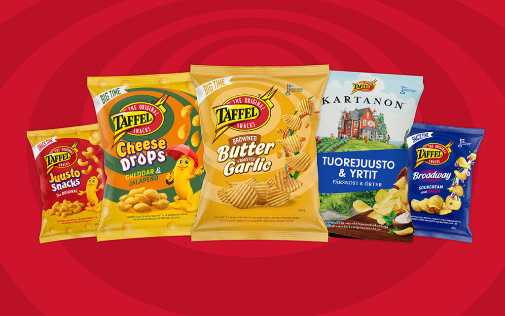 Uudistuneet Taffel-pussit sopivat nyt entistä paremmin jokaiseen snacks-hetkeen. Poksauta auki ja nauti BIG TIME–, GOOD TIME– tai SNACK TIME -pussi juuri silloin kun sinulle sopii.