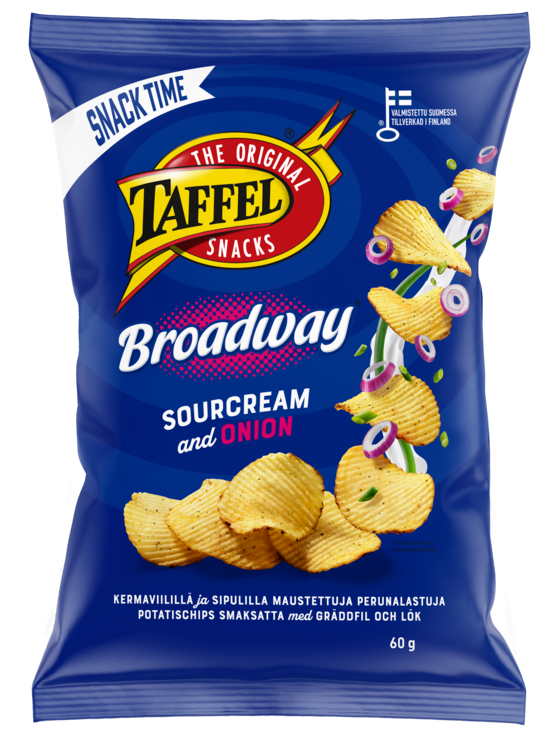 Taffel Broadway -sipsi tempaa mukaansa herkkushow’hun, jossa kermaviilin ja sipulin sävelet kohoavat pilvenpiirtäjien lailla taivaisiin. Oujea!