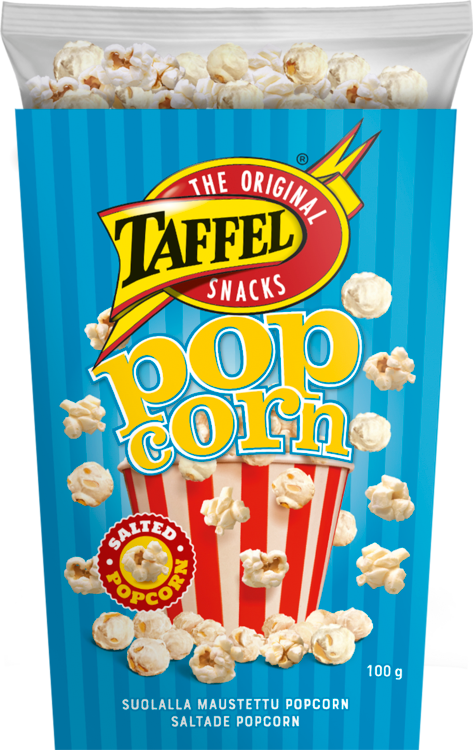 Valmiit, merisuolalla maustetut Taffel-popcornit ovat aina valmiina hyvään menoon! Ne myydään kätevässä popcorn-boksissa, joka nostaa fiiliksen kattoon ja tuo herkullisen leffateatteri- tai tivolitunnelman minne ikinä menetkin.